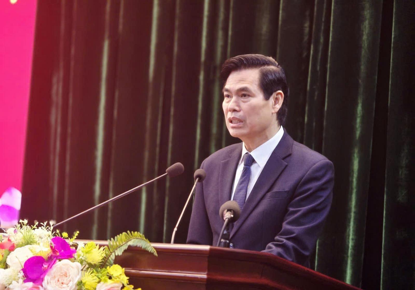 Tân Bí thư Tỉnh ủy Lạng Sơn Hoàng Quốc Khánh phát biểu nhận nhiệm vụ. Ảnh: Duy Chiến