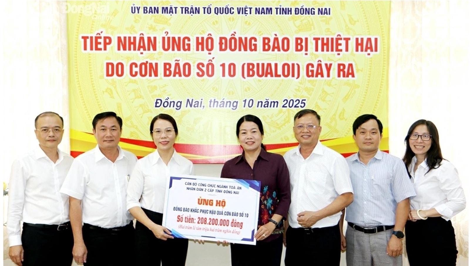 MTTQ tỉnh Đồng Nai tiếp nhận ủng hộ từ cá nhân, tổ chức để ủng hộ đồng bào bị bão Bualoi tàn phá. Ảnh MTTQ