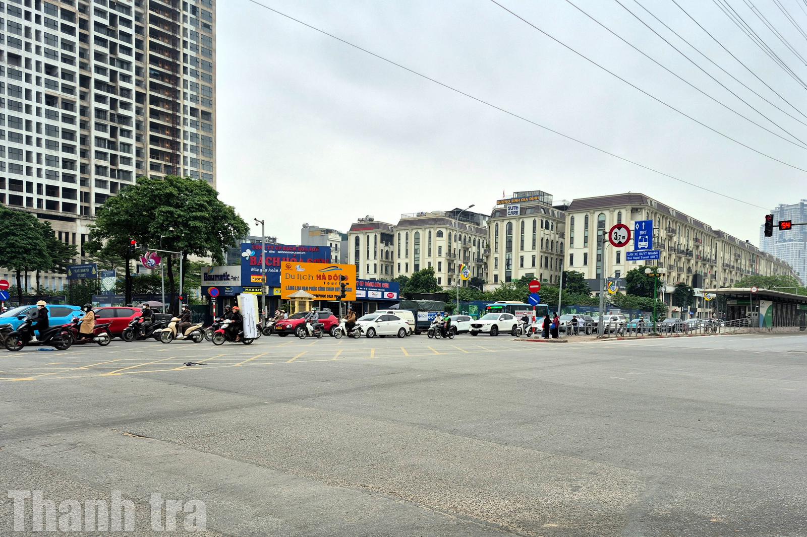 Tại một nút giao thông trọng điểm, các phương tiện dừng chờ đèn đỏ cách xa vạch kẻ đường. Ảnh: NT