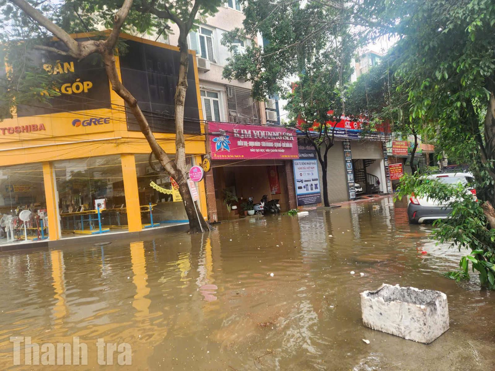 Điển hình như: Lưu vực sông Nhuệ, ngập tại Dương Đình Nghệ, Hoa Bằng, Phan Văn Trường, khu Resco, Võ Chí Công, Phú Xá, hầm chui Đại lộ Thăng Long số 5,6 Km9+656, Cầu Bươu, Triều Khúc, Yên Nghĩa, Quyết Thắng… Lưu vực sông Tô Lịch, giao thông cơ bản bảo đảm, còn đọng nước tại Thái Hà, Huỳnh Thúc Kháng, Nguyễn Chính… Lưu vực Tả Hồng vẫn còn tình trạng ngập tại Hoàng Như Tiếp, Cổ Linh, Đàm Quang Trung, Ngọc Lâm.