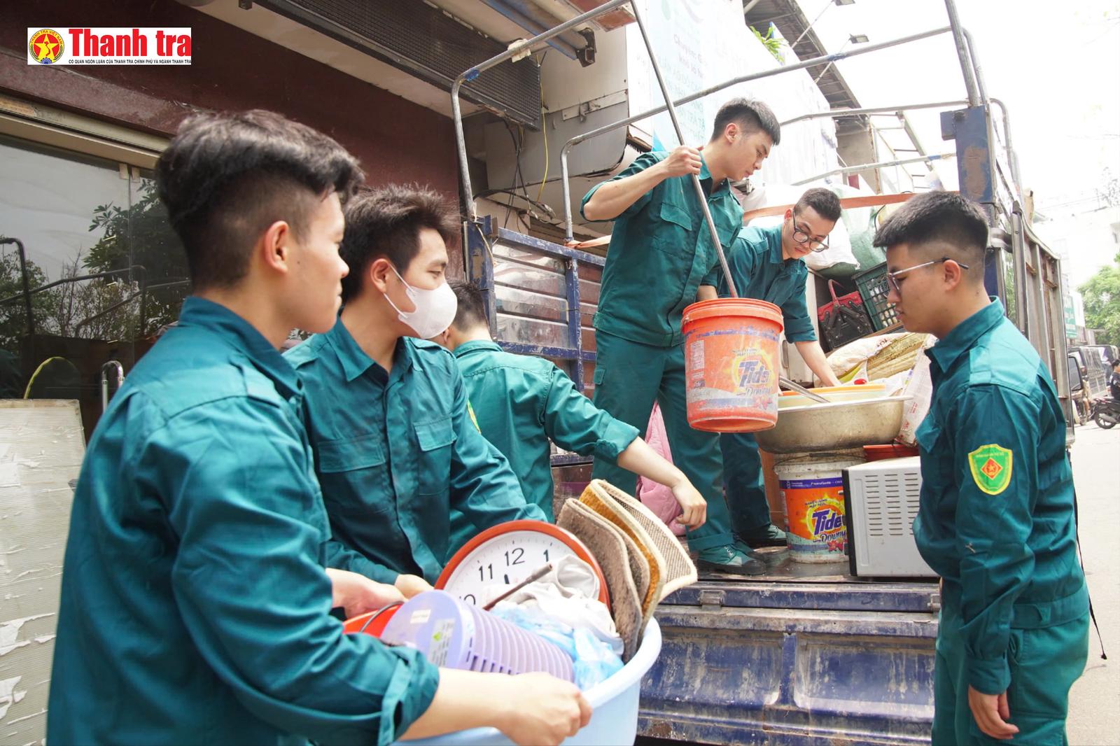 Lực lượng chức năng hỗ trợ người dân di chuyển tài sản để bàn giao mặt bằng phục vụ dự án cầu Tứ Liên. Ảnh: H.T