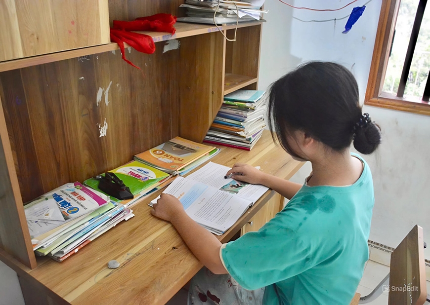 | Góc học tập của con trẻ được sắp xếp gọn gàng trong ngôi nhà mới tại xã Hòa An, tỉnh Cao Bằng. |