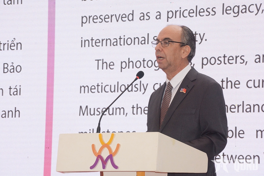 Đại sứ Cuba tại Việt Nam Rogelio Polanco Fuentes phát biểu tại lễ khai mạc triển lãm. |