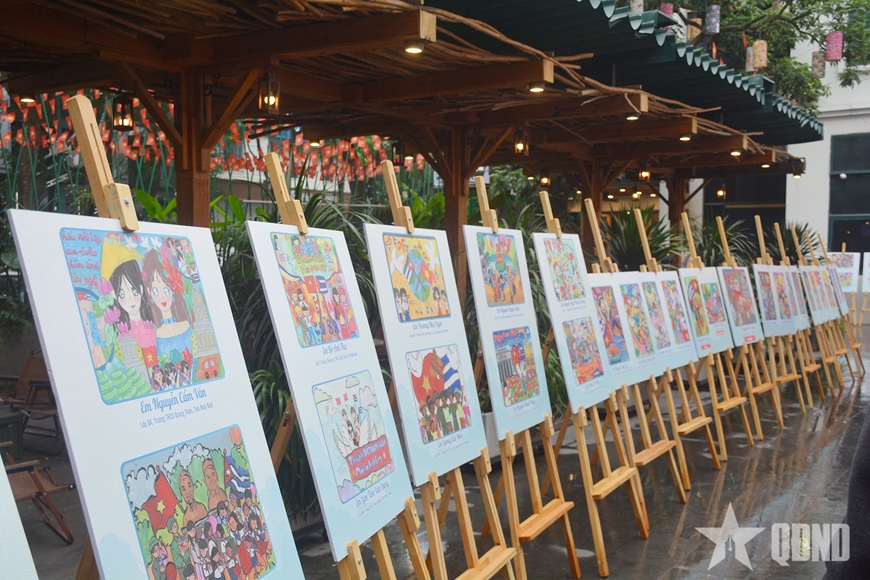 | Các bức tranh do thiếu nhi Việt Nam vẽ về mối quan hệ thủy chung gắn bó giữa Việt Nam và Cuba. |