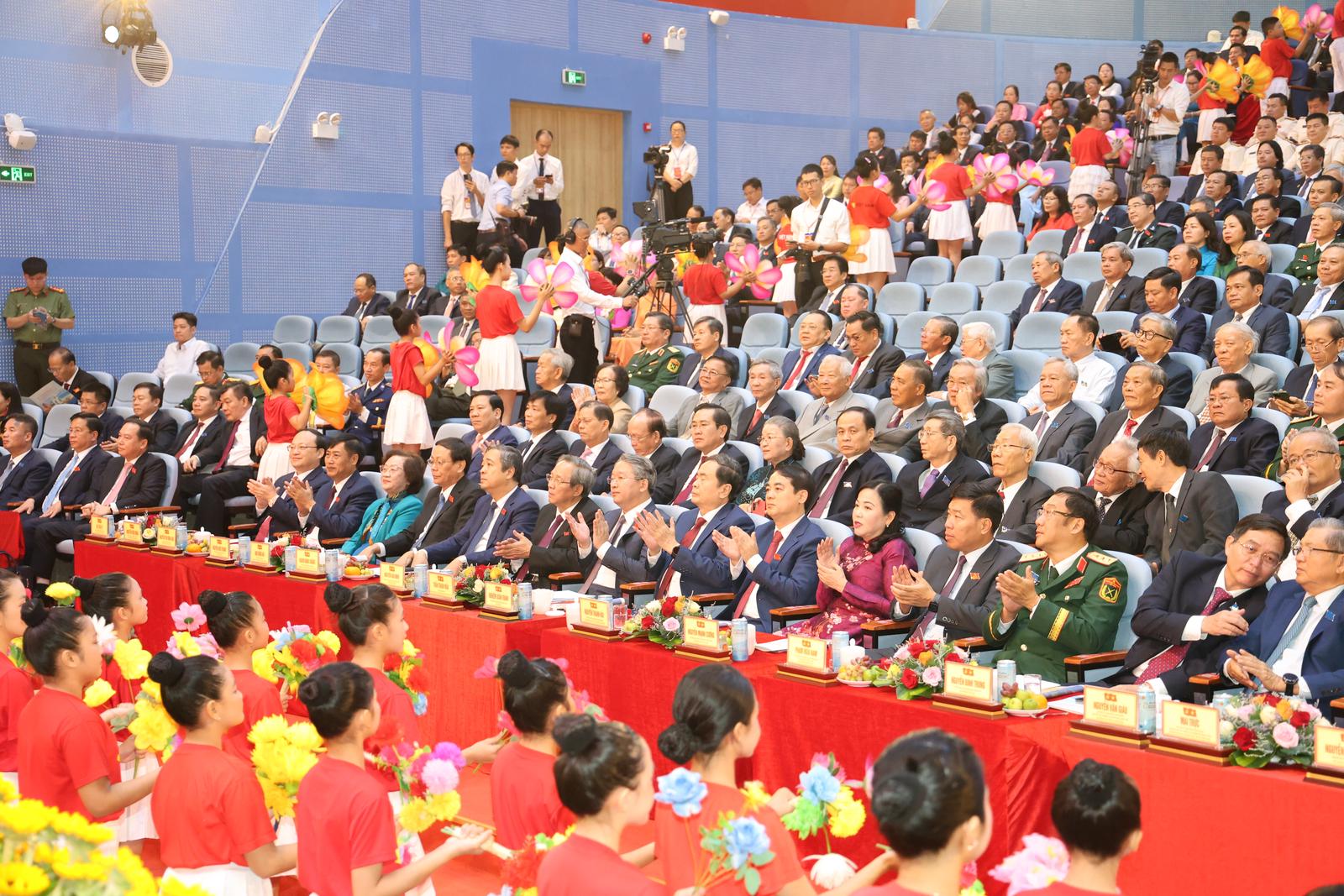 Chủ tịch Quốc hội Trần Thanh Mẫn tặng hoa chúc mừng đại hội. Ảnh: Ban Tổ chức