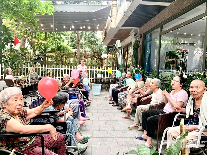 | Người cao tuổi được chăm sóc tại Trung tâm Dưỡng lão KAIGO, Hưng Yên. Ảnh: KIM ANH |