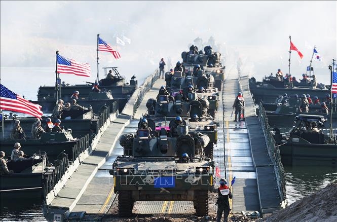 Binh sĩ Mỹ và Hàn Quốc tham gia cuộc tập trận chung ở Yeoju, Hàn Quốc, ngày 20-10-2023. Ảnh (tư liệu) minh họa |