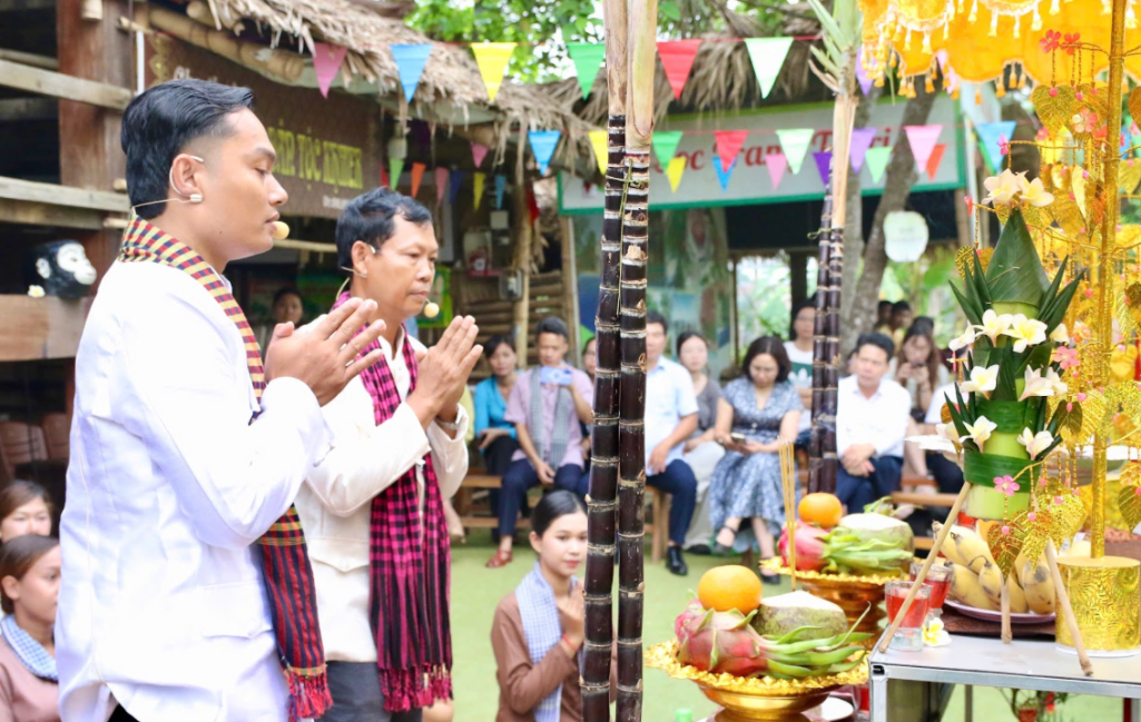 Cũng trong hai ngày 18 và 19/4, các lễ nghi truyền thống mang nét văn hóa riêng của mỗi dân tộc sẽ được tái hiện tại Làng như Lễ ok-om-bok của đồng bào Khmer (Vĩnh Long), Lễ mừng cơm mới của dân tộc Chu Ru (Lâm Đồng), nghi lễ nhập môn “son tràng” của dân tộc Tày (Quảng Ninh), và tái hiện lễ cưới hai lần của dân tộc Thái (Thanh Hóa).