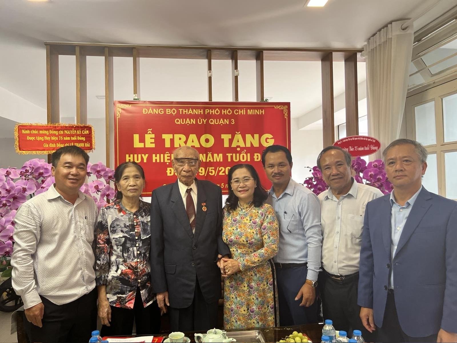 Nguyên Tổng Thanh tra Nhà nước Nguyễn Kỳ Cẩm cùng gia đình đón nhận Huy hiệu 75 năm tuổi Đảng. Ảnh: Gia đình cung cấp