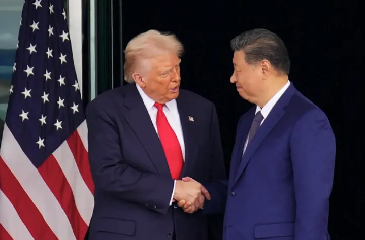 Tổng thống Mỹ Donald Trump và Chủ tịch Trung Quốc Tập Cận Bình bắt tay nhau khi rời đi sau cuộc hội đàm ở Busan, Hàn Quốc, ngày 30-10-2025. Ảnh: Getty |