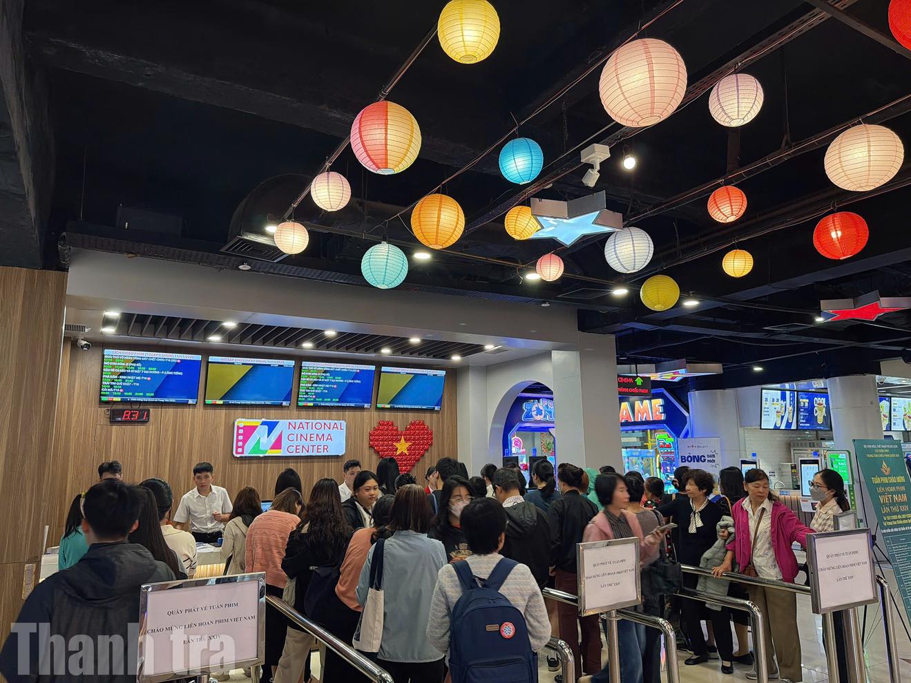 Đông đảo khán giả có mặt tại Trung tâm Chiếu phim quốc gia để nhận vé xem phim miễn phí tại Tuần phim chào mừng Liên hoan Phim Việt Nam lần thứ XXIV. Ảnh: Chính Bình