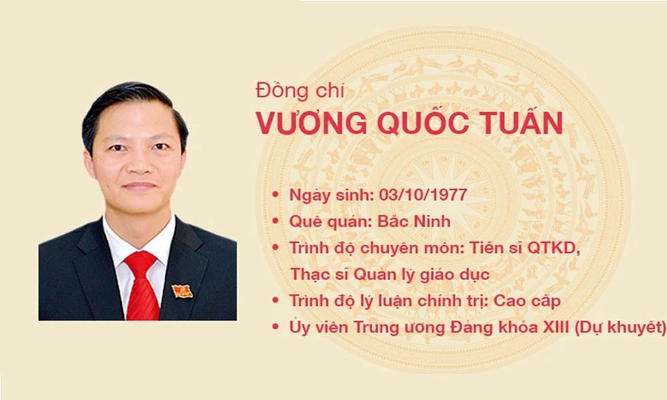 Ông Vương Quốc Tuấn có trình độ chuyên môn là tiến sĩ chuyên ngành Quản trị kinh doanh, thạc sĩ chuyên ngành Quản lý giáo dục và Cao cấp lý luận chính trị.