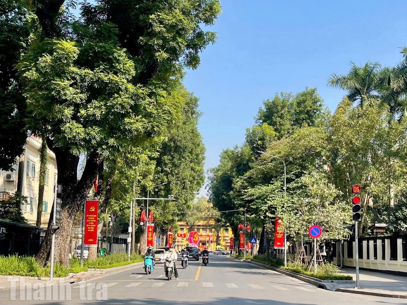 Cờ Tổ quốc tung bay trong nắng sớm, những tấm băng rôn, khẩu hiệu rực rỡ sắc màu nổi bật trên nền trời xanh thẳm. Các tuyến phố như khoác thêm “tấm áo mới”, vừa trang nghiêm, vừa tươi vui, mang theo niềm tin và kỳ vọng của Nhân dân Thủ đô hướng về một kỳ Đại hội có ý nghĩa đặc biệt đối với tương lai đất nước. Dòng người đi lại hối hả hơn, nhưng trong ánh mắt ai cũng ánh lên niềm tự hào lặng lẽ.