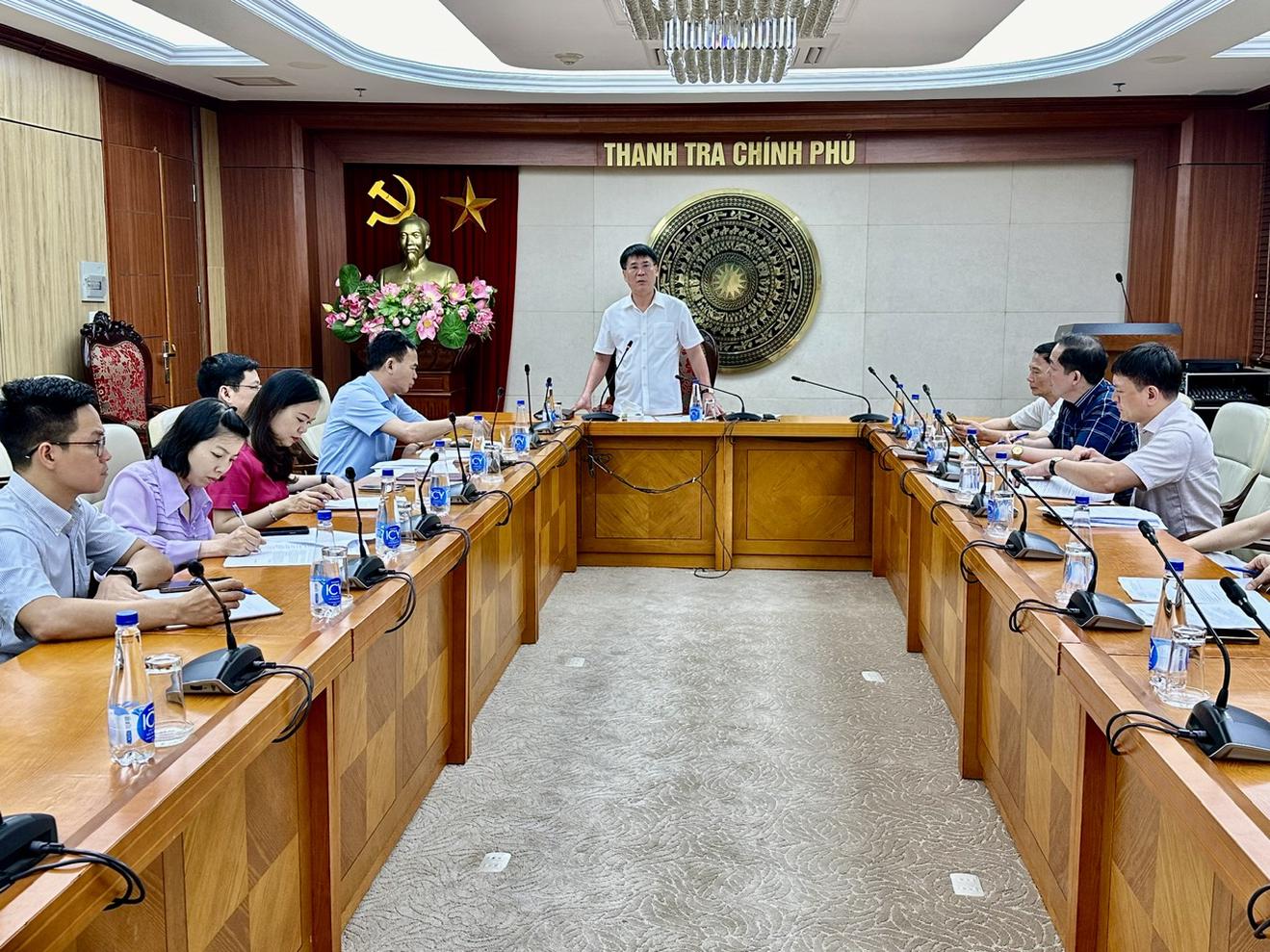 Ngày 20/5, tại trụ sở Thanh tra Chính phủ, Phó Tổng Thanh tra Lê Sỹ Bảy đã chủ trì buổi làm việc với các đơn vị có liên quan về triển khai thực hiện một số nội dung theo Quyết định số 755/QĐ-TTg của Thủ tướng Chính phủ ban hành kế hoạch thực hiện Kết luận của Bộ Chính trị, Ban Bí thư về Đề án sắp xếp hệ thống cơ quan thanh tra, tinh, gọn, mạnh, hiệu năng, hiệu lực, hiệu quả.