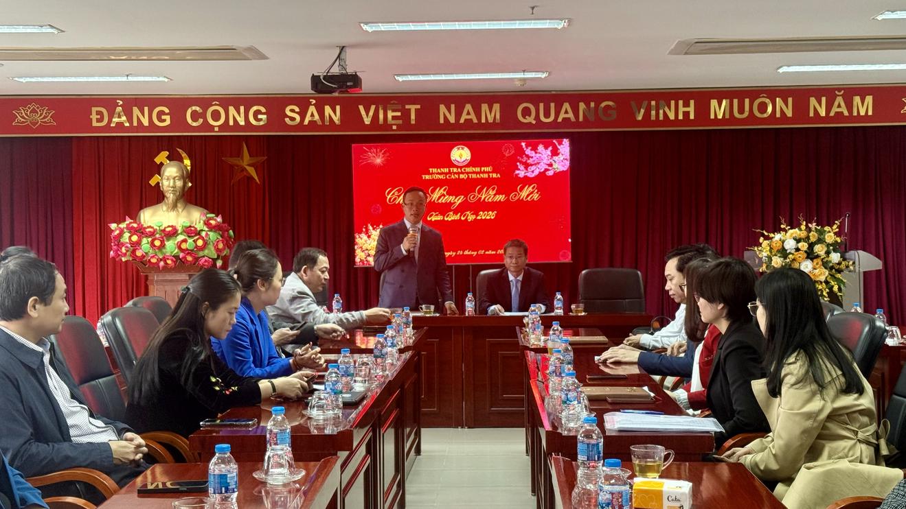Sáng 24/2, tại Trường Cán bộ Thanh tra, Phó Tổng Thanh tra Chính phủ Lê Tiến Đạt đã có buổi gặp mặt đầu năm, gửi lời chúc mừng năm mới tới Ban Giám hiệu, viên chức và người lao động nhà trường, đồng thời biểu dương những kết quả nổi bật mà tập thể đơn vị đạt được trong năm 2025 và 2 tháng đầu năm 2026.