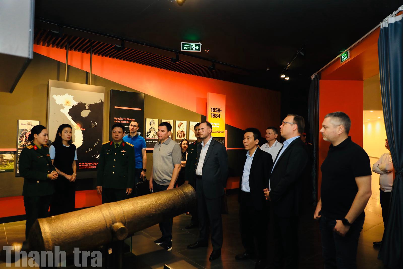 Trong khuôn khổ chuyến thăm, Đoàn đại biểu cấp cao Cơ quan Công vụ, Nhân sự và Chống tham nhũng thuộc Tổng thống Liên bang Nga đã tới tham quan Bảo tàng Lịch sử Quân sự Việt Nam. Ảnh: P.A