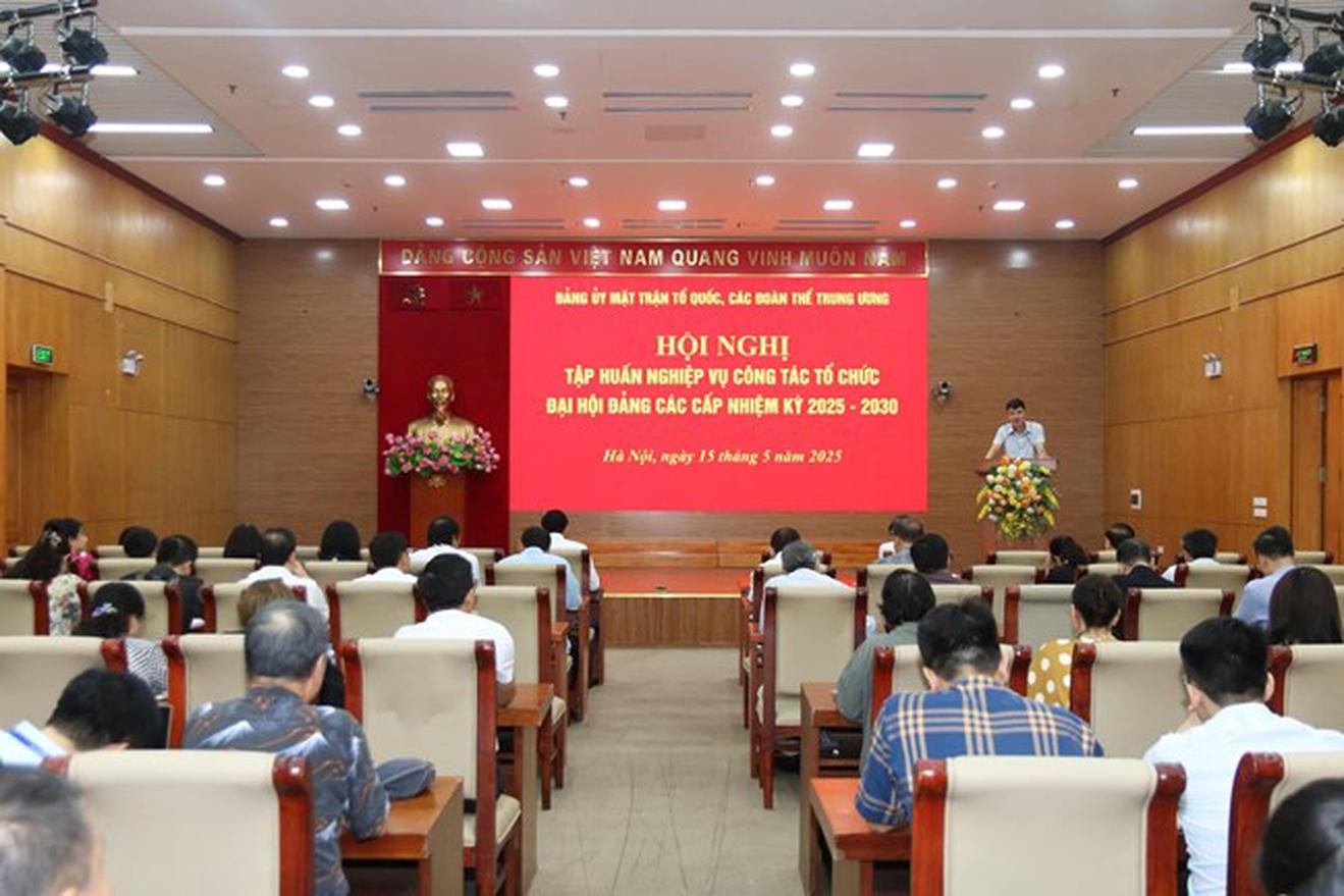 Sáng 15/5, Đảng ủy Mặt trận Tổ quốc (MTTQ), các đoàn thể Trung ương tổ chức Hội nghị tập huấn nghiệp vụ công tác tổ chức Đại hội Đảng các cấp tiến tới Đại hội đại biểu Đảng bộ MTTQ, các đoàn thể Trung ương, nhiệm kỳ 2025 - 2030.