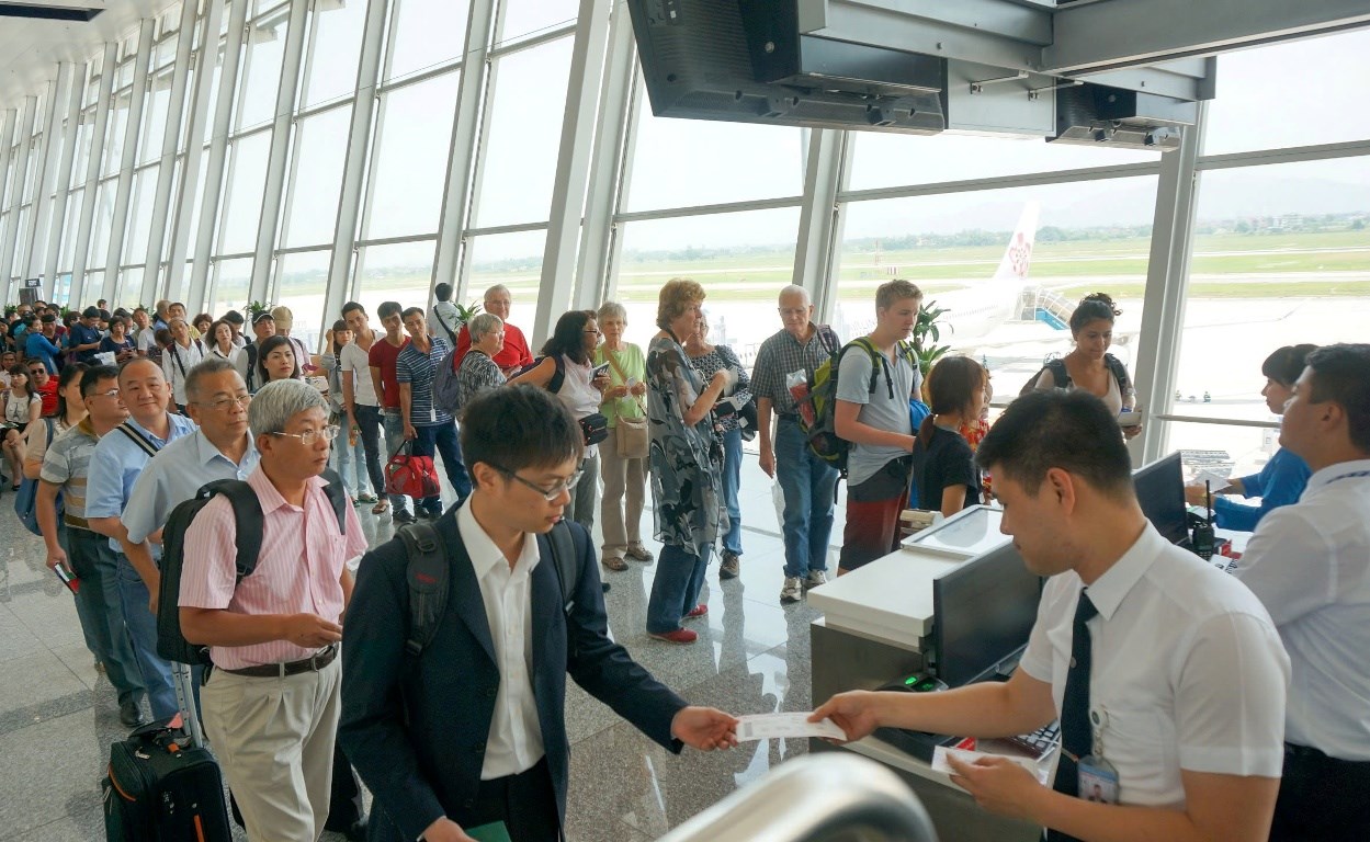 | Hành khách chuẩn bị lên máy bay tại Cảng hàng không quốc tế Nội Bài. Ảnh: NIA |
