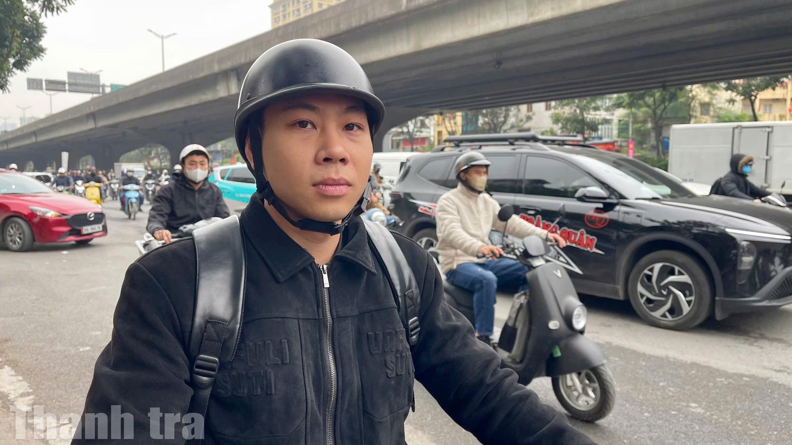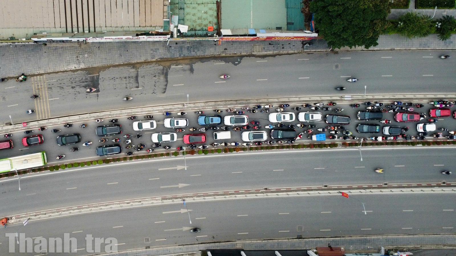 Anh Nguyễn Chí Đan (phường Thanh Xuân, Hà Nội) chia sẻ: “Sáng nay đi làm lại sau dịp nghỉ lễ, đường đông hơn hẳn. Mặc dù đi làm sớm hơn mọi ngày, tôi mất gần 50 phút mới đi được quãng đường bình thường chỉ 30 phút. Xe máy, ô tô chen chúc”. Ảnh: Việt Hà.