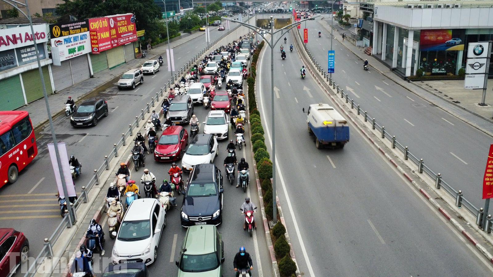 Ghi nhận của phóng viên sáng 05/01 từ khung giờ 6 giờ 30 đến 9 giờ, các trục đường chính như Khuất Duy Tiến, Trần Duy Hưng, Tố Hữu, Lê Văn Lương, Đại lộ Thăng Long và các tuyến vành đai hướng vào nội đô đều xảy ra ùn ứ cục bộ. Dòng phương tiện nối dài, di chuyển chậm, nhất là tại các nút giao lớn và khu vực có mật độ giao thông phức tạp như nút giao từ Đại lộ Thăng Long đi qua Hầm chui Trung Hoà nối vào Trần Duy Hưng để đi trung tâm thành phố.