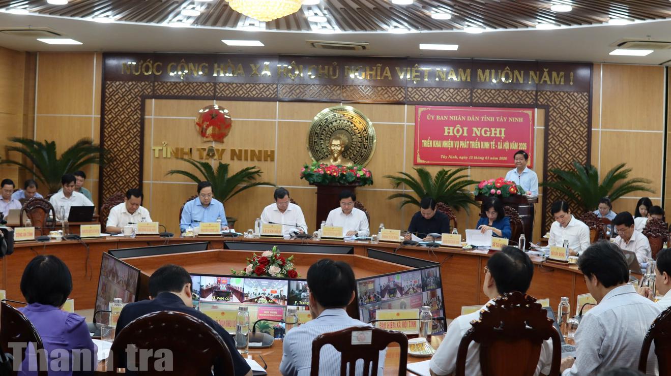 Hội nghị triển khai nhiệm vụ kinh tế - xã hội năm 2026 do UBND tỉnh Tây Ninh tổ chức. Ảnh: Thu Huyền