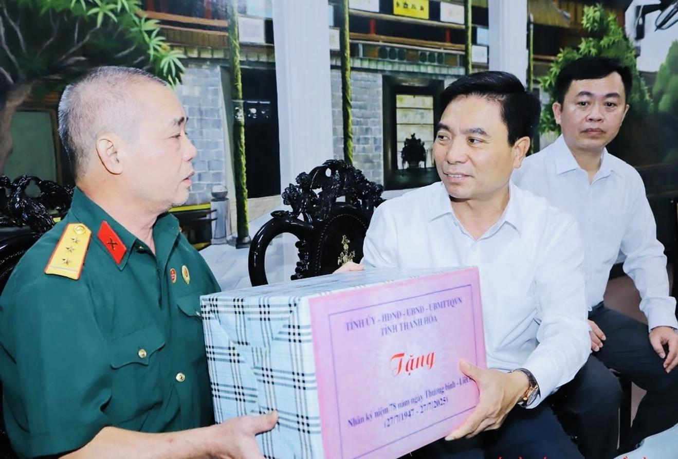 Bí thư Tỉnh uỷ Nguyễn Doãn Anh thăm, tặng quà ông Lê Gia Thịnh, thương binh hạng 1/4 tỷ lệ thương tật 81%, nhân kỷ niệm 78 năm Ngày Thương binh - Liệt sĩ (27/7/1947 - 27/7/2025) tại phường Hạc Thành, tỉnh Thanh Hoá. Ảnh: Minh Hiếu
