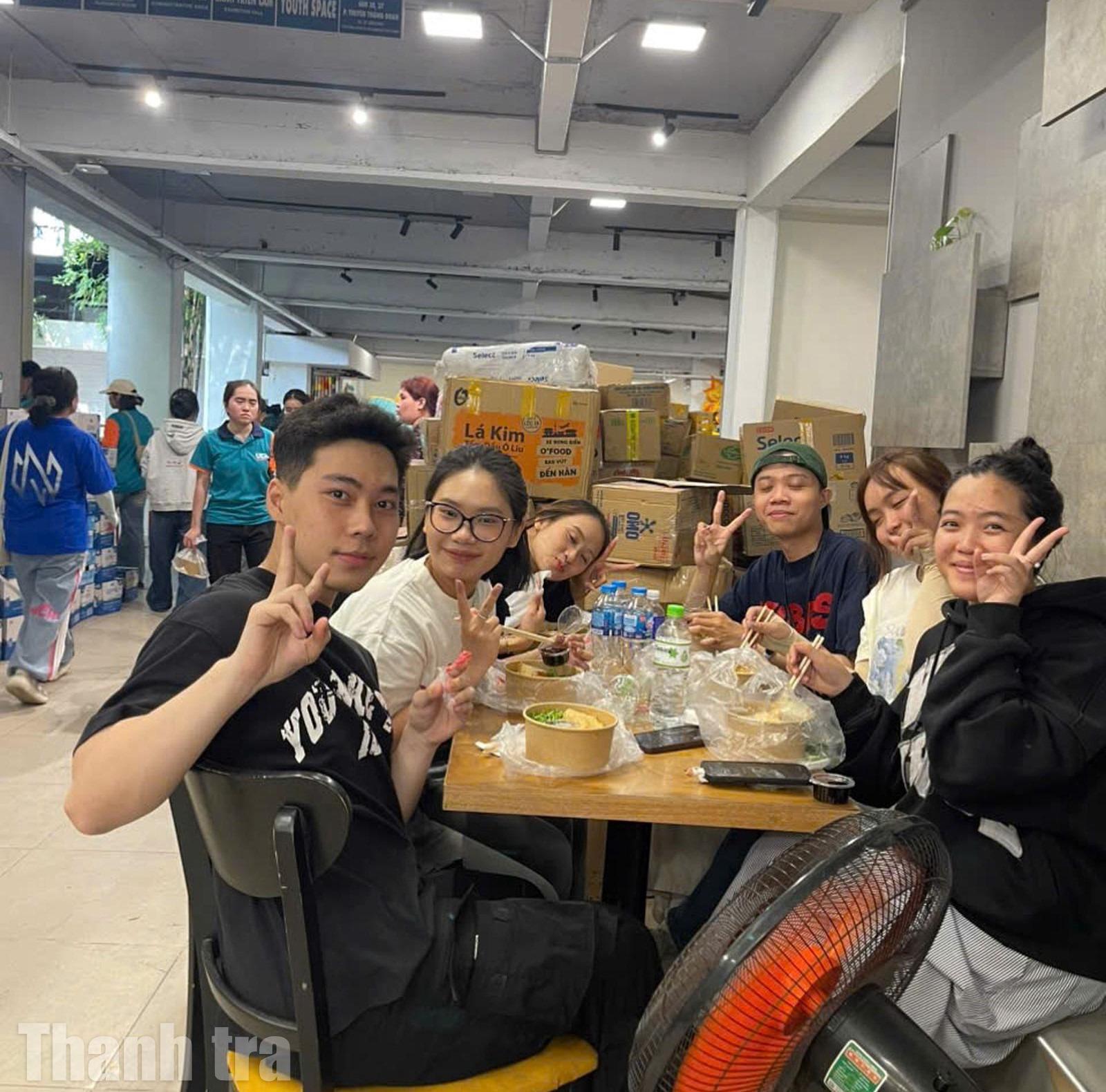 Bữa ăn trưa vội vàng, đơn giản nhất để quay về với công việc. Ảnh: TH
