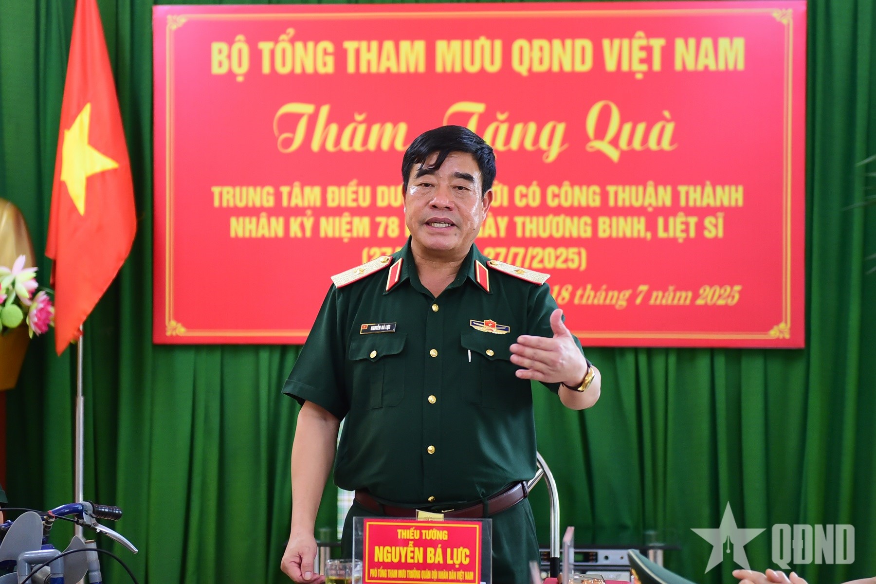 Sáng 18-7, đoàn công tác Bộ Tổng Tham mưu Quân đội nhân dân Việt Nam do Thiếu tướng Nguyễn Bá Lực, Phó tổng Tham mưu trưởng làm trưởng đoàn, đã đến thăm, tặng quà tại Trung tâm Điều dưỡng người có công Thuận Thành (Bắc Ninh) nhân dịp kỷ niệm 78 năm Ngày Thương binh - Liệt sĩ (27-7-1947 / 27-7-2025).