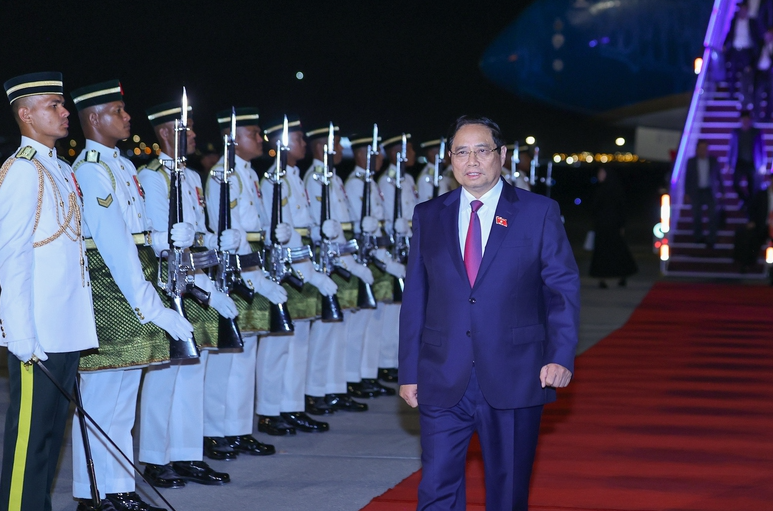 | Thủ tướng Phạm Minh Chính cùng Đoàn đại biểu Việt Nam tới Thủ đô Kuala Lumpur, Malaysia, bắt đầu chuyến công tác tham dự Hội nghị Cấp cao ASEAN lần thứ 47 và các hội nghị cấp cao liên quan. Ảnh: VGP |