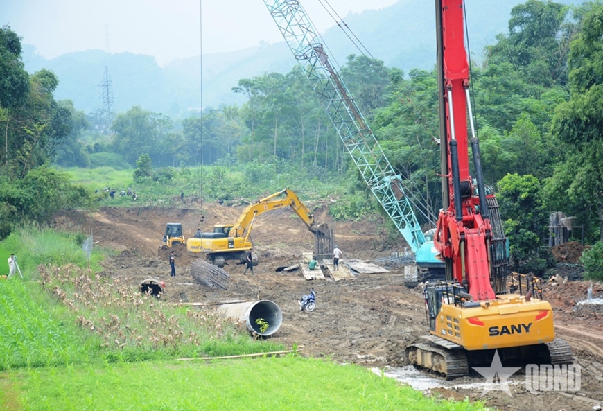 Thi công dự án đầu tư xây dựng tuyến đường cao tốc Chợ Mới - Bắc Kạn (tỉnh Thái Nguyên). Ảnh: BẢO LINH |
