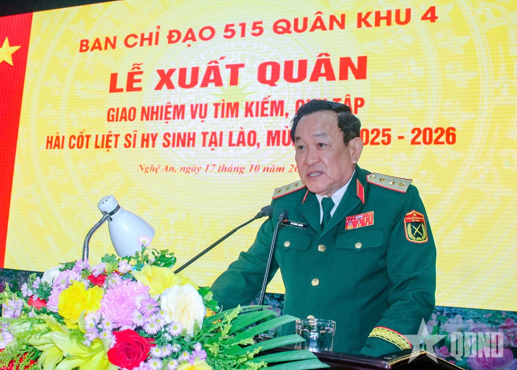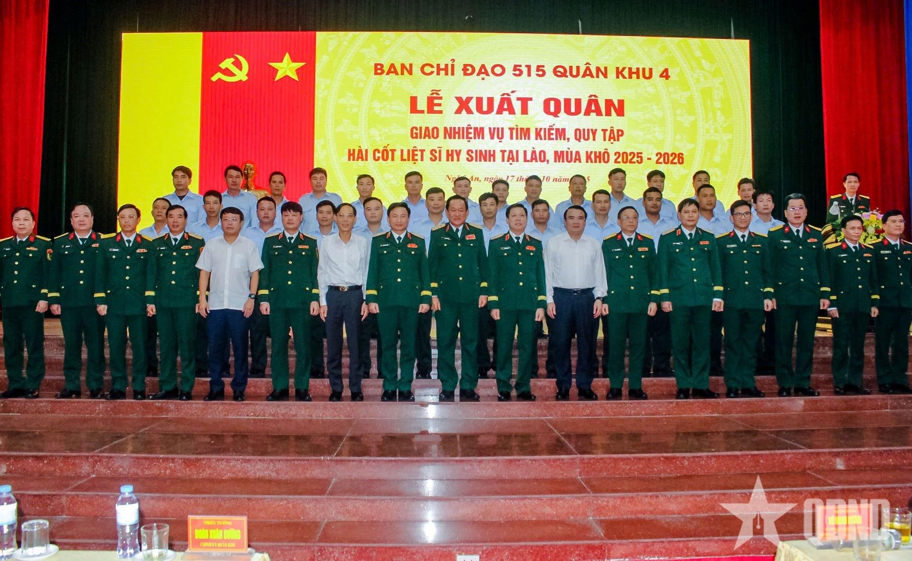 Sáng 17-10, Ban chỉ đạo về tìm kiếm, quy tập và xác định danh tính hài cốt liệt sĩ (Ban chỉ đạo 515) Quân khu 4 tổ chức Lễ xuất quân giao nhiệm vụ tìm kiếm, quy tập hài cốt liệt sĩ tại Lào mùa khô 2025-2026.