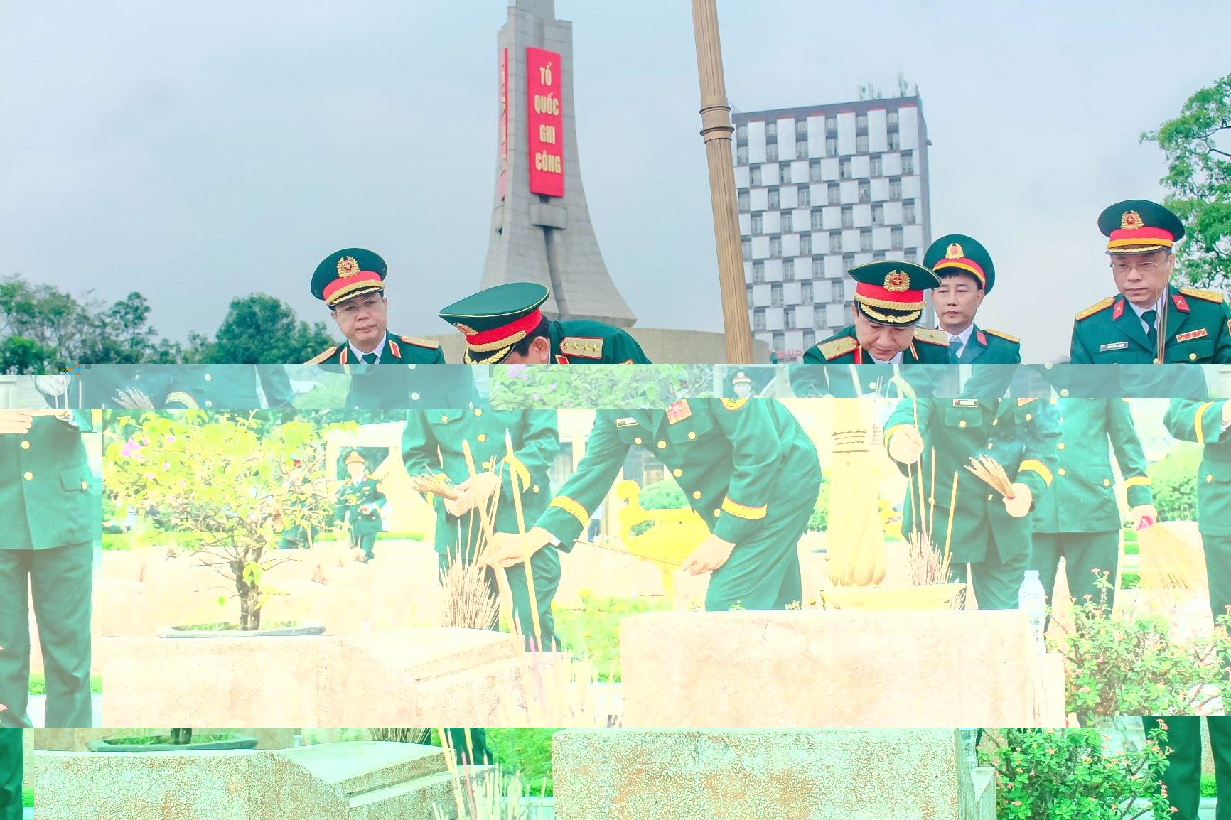 Thượng tướng Võ Minh Lương và các đại biểu tưởng niệm các anh hùng liệt sĩ tại Nghĩa trang Liệt sĩ phường Thành Vinh (tỉnh Nghệ An). |
