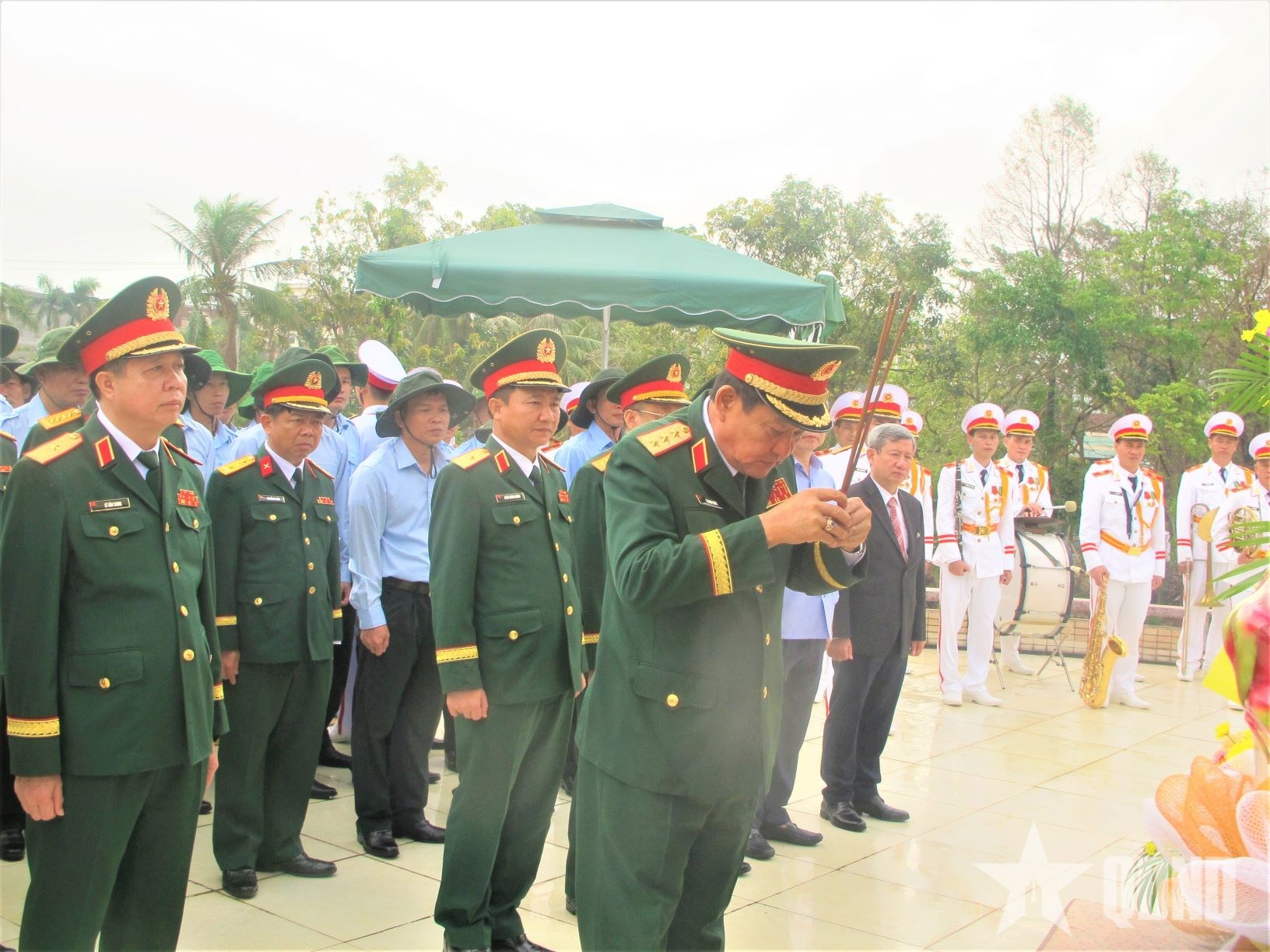 Thượng tướng Võ Minh Lương và các đại biểu thắp hương tại các phần mộ liệt sĩ. |