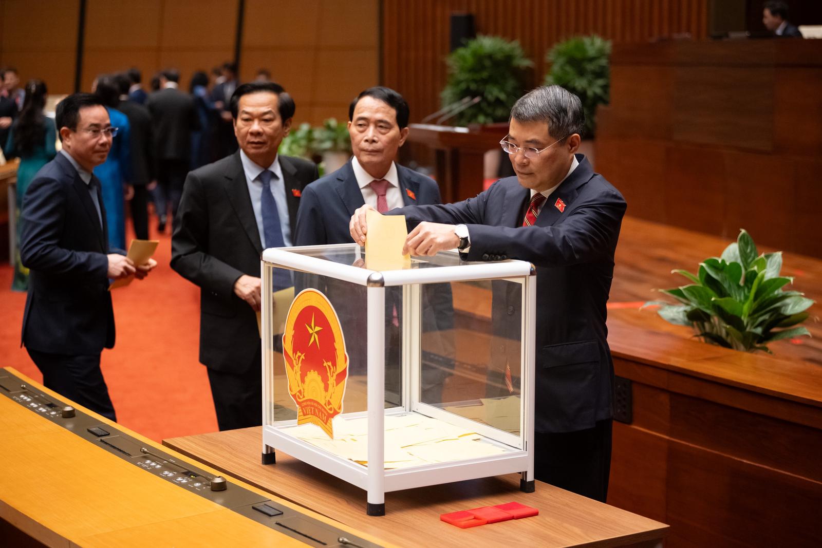 Trưởng Ban Tổ chức Trung ương Lê Minh Hưng và các đại biểu Quốc hội bỏ phiếu bầu Chủ tịch nước. Ảnh: P.Thắng