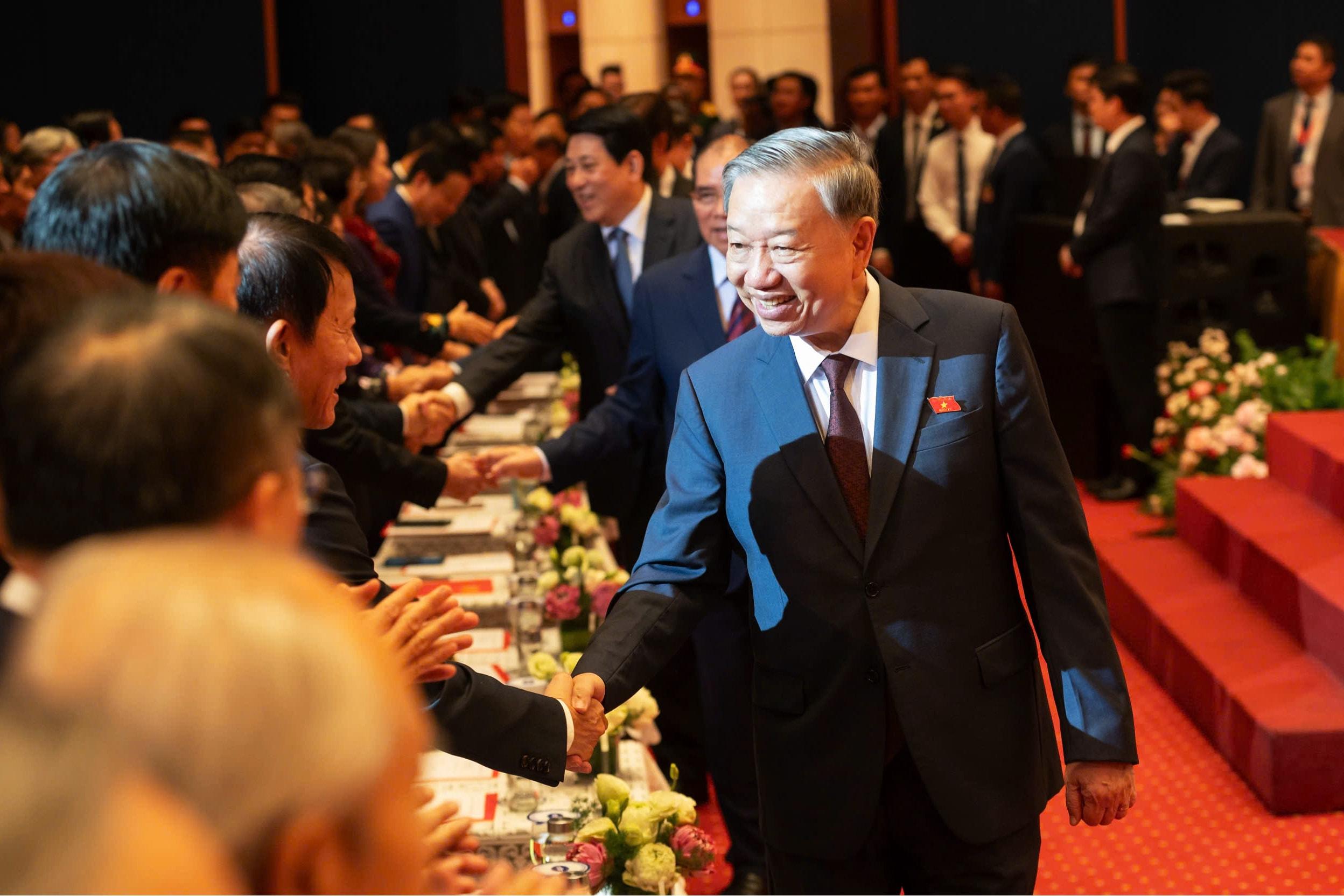 Tổng Bí thư Tô Lâm lần đầu tiên gặp mặt gần 2.000 đại biểu Quốc hội qua các thời kỳ. Ảnh: P.Thắng