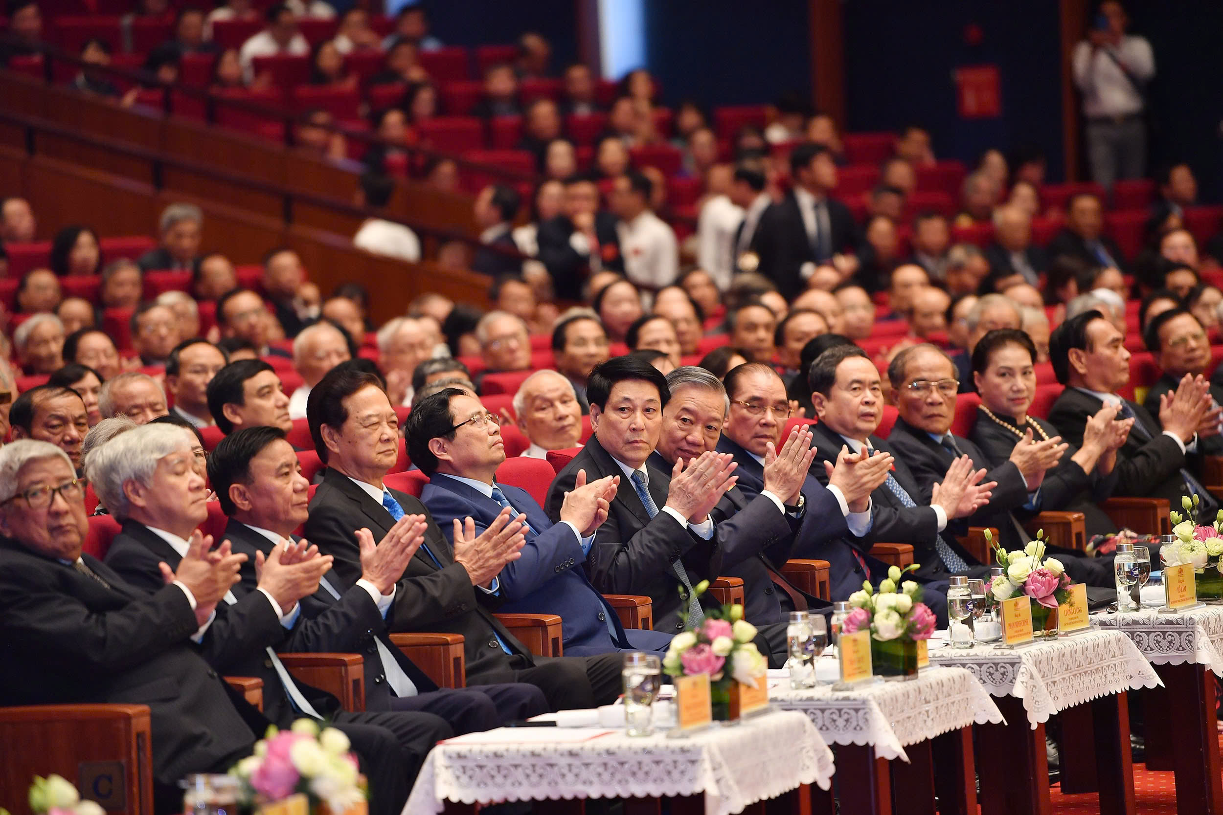 Lãnh đạo Đảng, Nhà nước và các đại biểu tham dự buổi gặp mặt các đại biểu Quốc hội qua các thời kỳ. Ảnh: P.Thắng