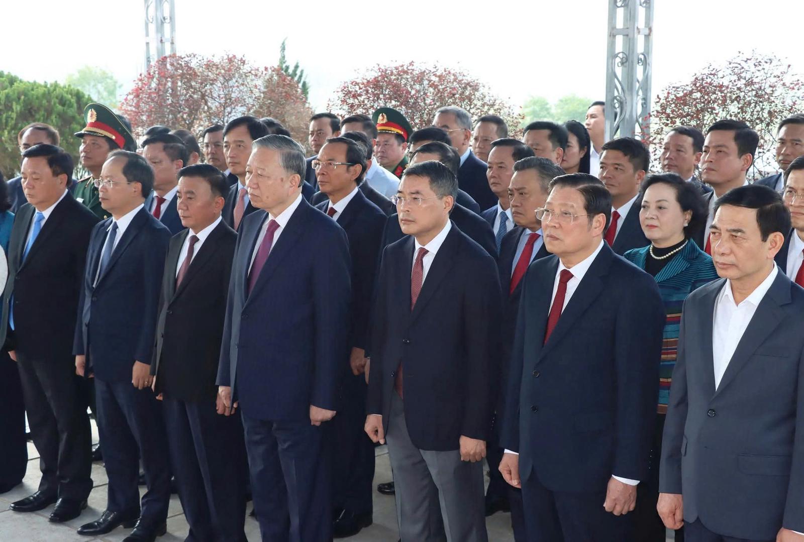Tổng Bí thư Tô Lâm và Đoàn công tác tri ân tưởng nhớ Tổng Bí thư đầu tiên của Đảng. Ảnh: NT