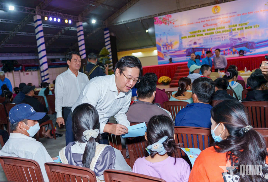 Dịp Tết Nguyên đán 2026, cùng với sự chung tay của Công đoàn các phường, xã, đặc khu; hơn 20.000 Công đoàn cơ sở, Liên đoàn Lao động TP Hồ Chí Minh đã rà soát, chăm lo cho 350.000 đoàn viên, lao động có hoàn cảnh khó khăn. Riêng chương trình “Chuyến xe Công đoàn - Xuân năm 2026” đưa hơn 3.000 đoàn viên, người lao động và người thân đang làm việc ở TP Hồ Chí Minh về quê ở các tỉnh miền Trung, miền Bắc. Tại các điểm tổ chức lễ khởi hành, Liên đoàn Lao động TP Hồ Chí Minh trao nhiều phần quà cho đoàn viên, người lao động và lì xì cho thiếu nhi là con đoàn viên về cùng cha mẹ trên các “Chuyến xe Công đoàn”.