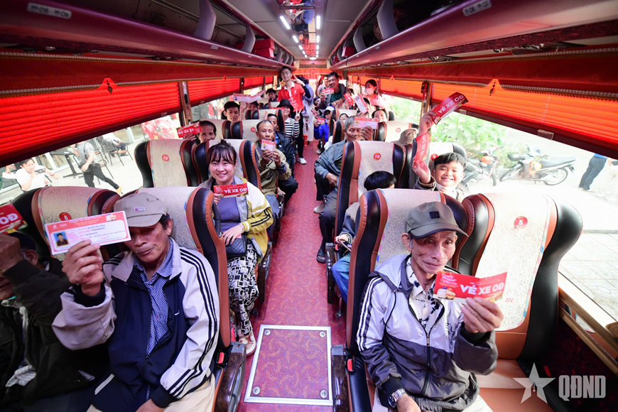 | Các chuyến xe nghĩa tình của tổ chức công đoàn TP Hồ Chí Minh đưa công nhân về quê đón Tết. |
