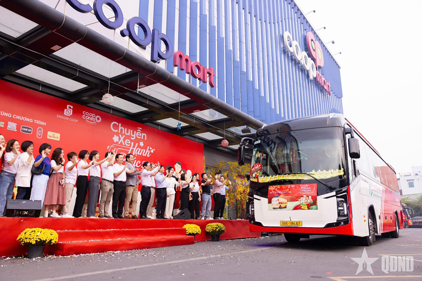 | Các “Chuyến xe hạnh phúc – Cùng Saigon Co.op về quê đón Tết” chính thức lăn bánh. |