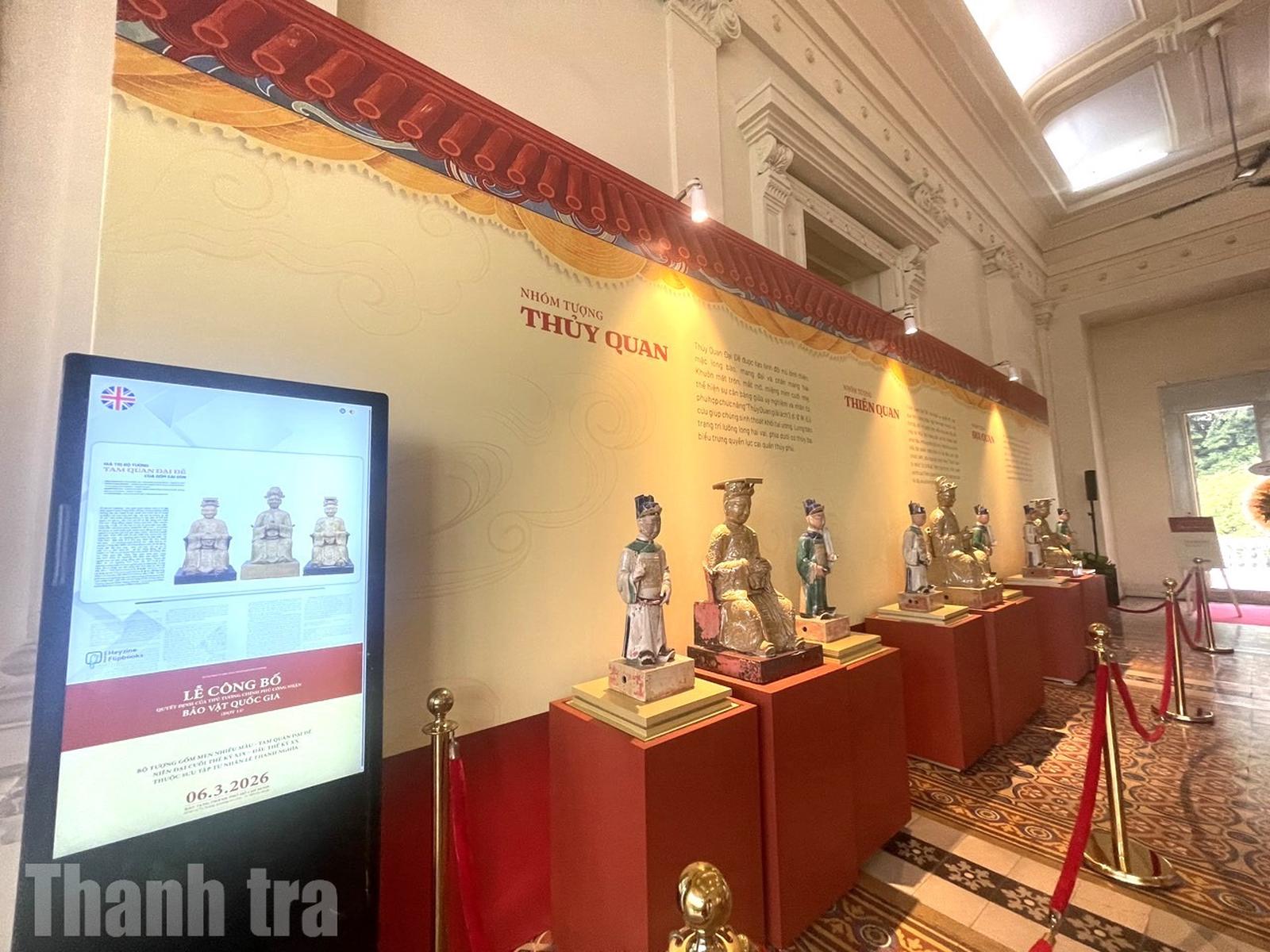 Bảo vật quốc gia Bộ tượng gốm men nhiều màu Tam quan Đại đế. Ảnh: Thu Huyền