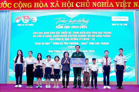 Ngày 25/3, tại thành phố Bạc Liêu, Đoàn công tác Quỹ học bổng Vừ A Dính, Câu lạc bộ “Vì Hoàng Sa - Trường Sa thân yêu” phối hợp cùng Tỉnh Đoàn, Sở Giáo dục và Đào tạo tỉnh Bạc Liêu tổ chức Lễ trao học bổng năm học 2024 - 2025 cho học sinh dân tộc thiểu số và vùng biển đảo, con cán bộ - quân nhân chuyên nghiệp Bộ đội Biên phòng, học sinh bị ảnh hưởng vì COVID-19 tại tỉnh Bạc Liêu.