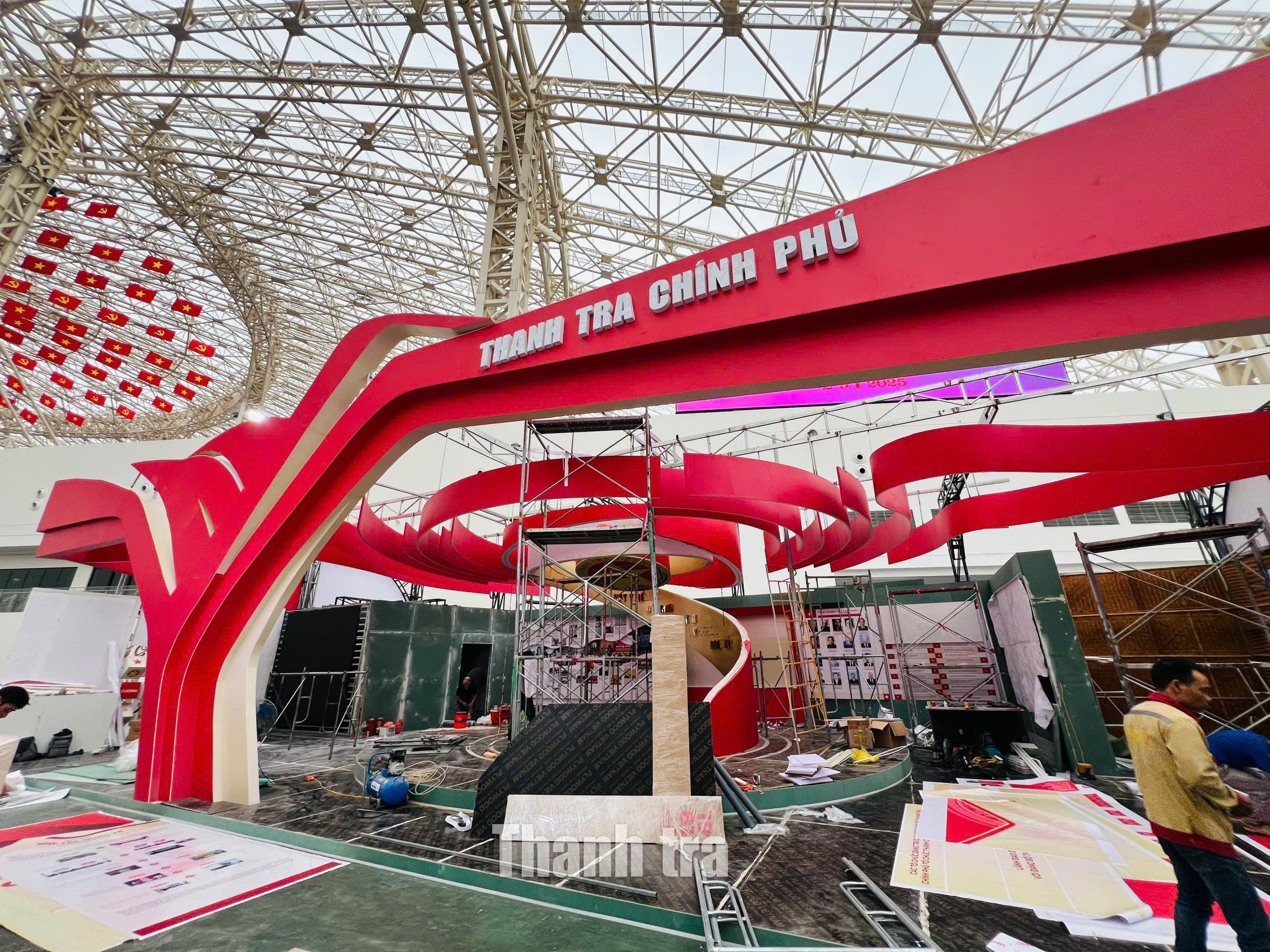 Trao đổi với phóng viên, ông Trần Quang Tiến - Phụ trách thi công không gian triển lãm ngành Thanh tra cho biết, đơn vị đang bố trí nhiều kíp làm việc trong ngày để nhanh chóng hoàn thiện các hạng mục lắp đặt, bảo đảm tiến độ theo yêu cầu.