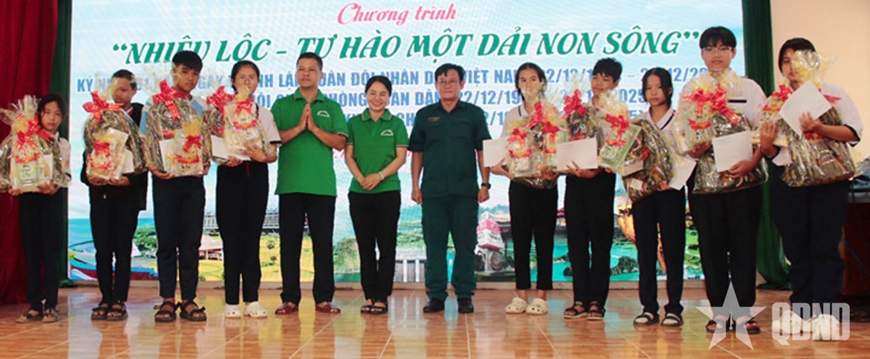 Nhân dịp này, đoàn đã trao 10 suất quà kèm học bổng (mỗi suất quà trị giá 2 triệu đồng) tặng các học sinh có hoàn cảnh khó khăn trên địa bàn.