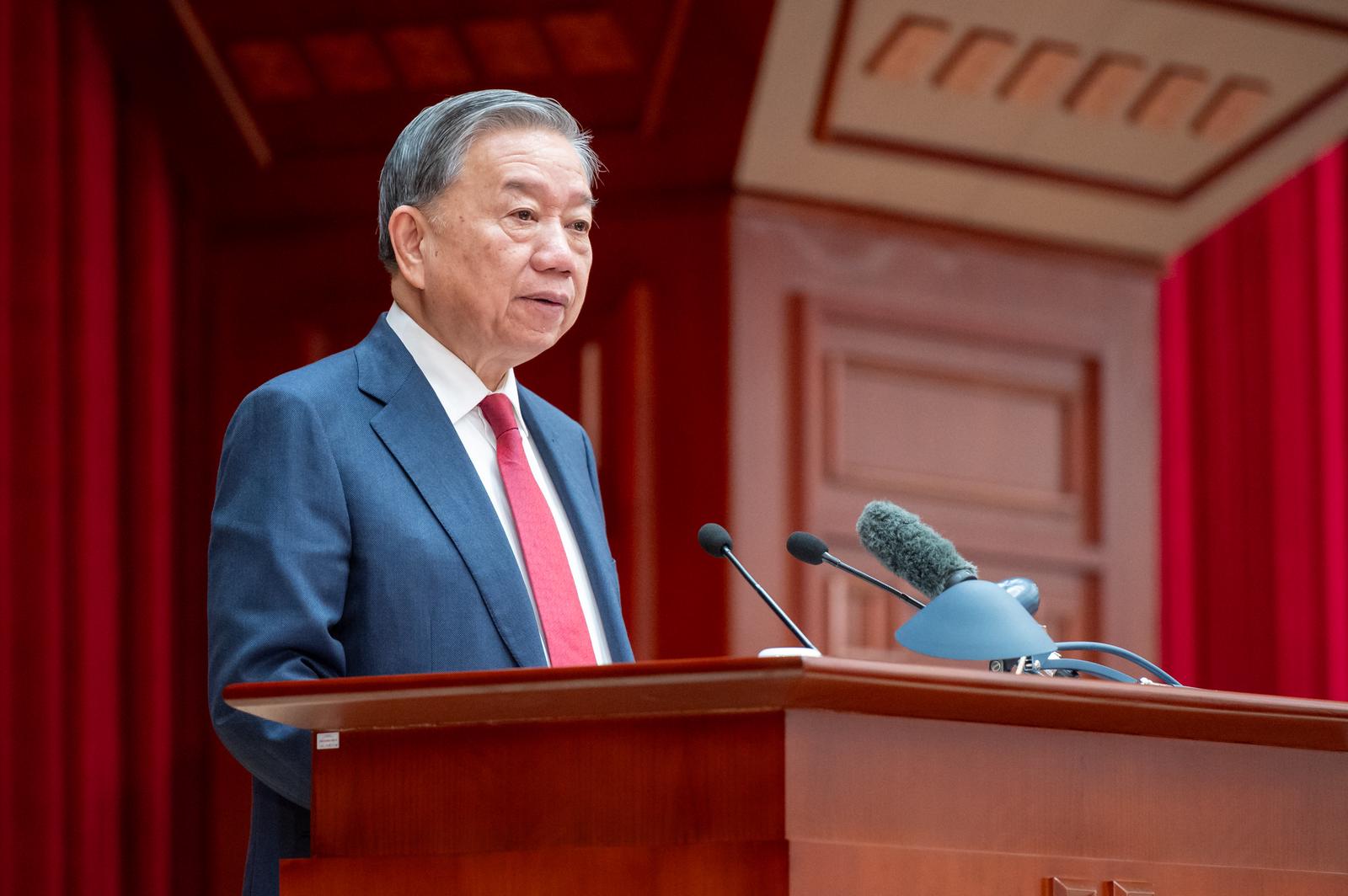 Tổng Bí thư Tô Lâm phát biểu khai mạc Hội nghị Trung ương 14 khóa XIII. Ảnh: Đ.X
