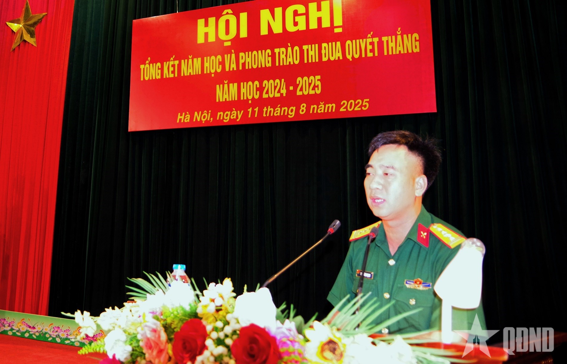 Sáng 11-8, Trường Sĩ quan Pháo binh (Binh chủng Pháo binh) tổ chức hội nghị tổng kết năm học và Phong trào Thi đua Quyết thắng năm học 2024-2025. Đại tá Trần Đình Mạnh, Phó tư lệnh, Tham mưu trưởng Binh chủng Pháo binh dự, chỉ đạo hội nghị.