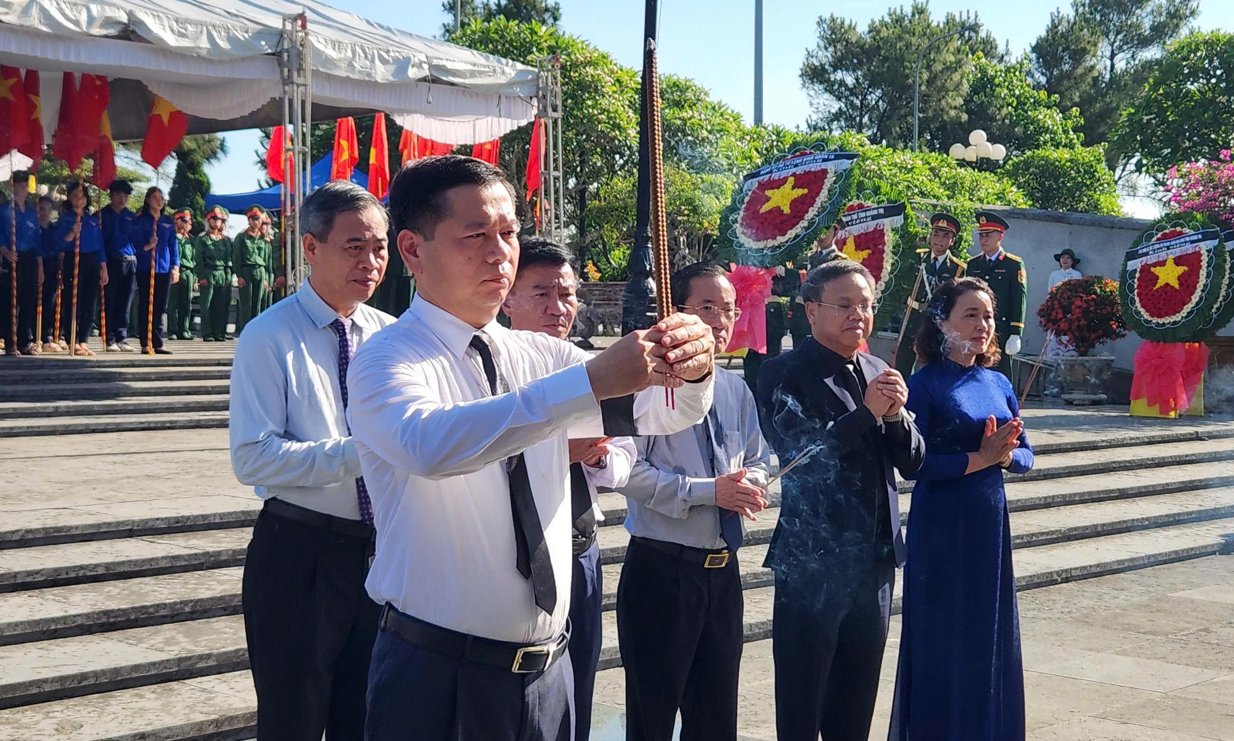 Bí thư Tỉnh ủy Quảng Trị Nguyễn Long Hải cùng các lãnh đạo tỉnh Quảng Trị dâng hương tưởng niệm các Anh hùng liệt sĩ. Ảnh: Minh Tân