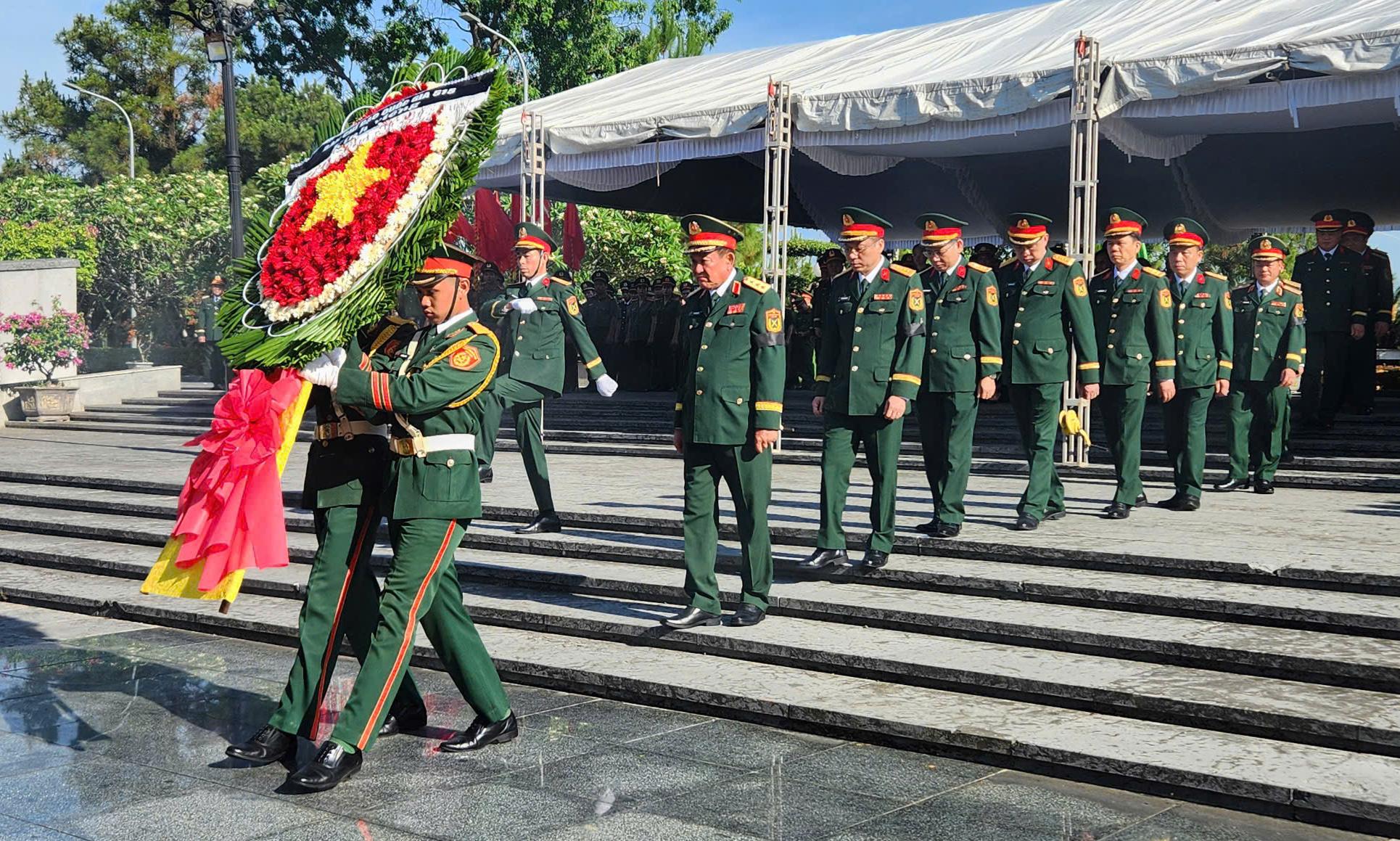 Thượng tướng Võ Minh Lương, Ủy viên Ban Chấp hành Trung ương Đảng, Thứ trưởng Bộ Quốc phòng, Phó Trưởng Ban Chỉ đạo quốc gia 515 cùng các đại biểu dâng hương tưởng niệm các Anh hùng liệt sĩ. Ảnh: Minh Tân