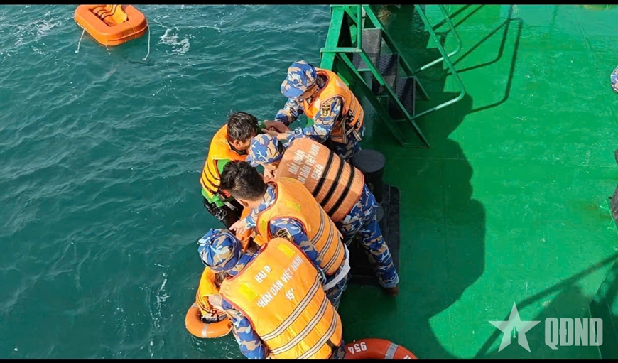 Nhận được thông tin, Bộ tư lệnh Vùng 5 Hải quân đã điều Tàu 954 cùng 24 cán bộ, chiến sĩ nhanh chóng đến hiện trường. Sau gần 1 giờ cơ động, Tàu 954 phát hiện 2 thuyền viên đang trôi dạt trên biển trong tình trạng sức khỏe yếu. Cán bộ, chiến sĩ đã nhanh chóng đưa nạn nhân lên tàu an toàn, tiến hành sơ cứu.
