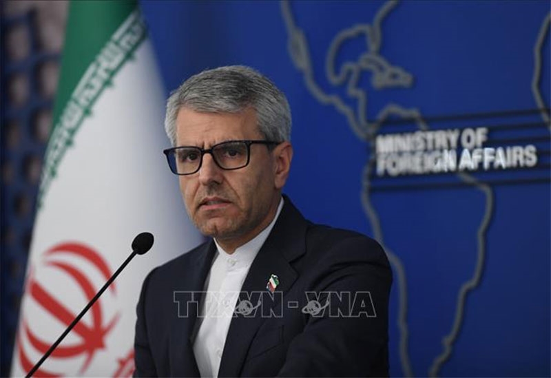 | Người phát ngôn Bộ Ngoại giao Iran Esmaeil Baghaei phát biểu tại cuộc họp báo ở Tehran. Ảnh: THX/TTXVN |
